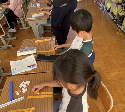 ブロックを使いながら答えの求め方を考えました。