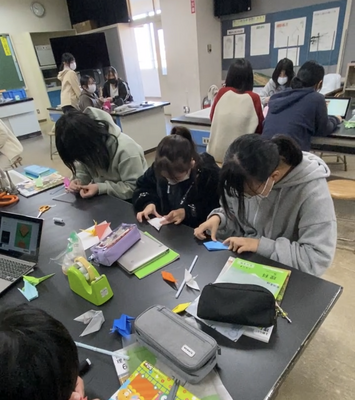 折り紙を折って、紐でストローに結びつけ、バランスを取ります。
