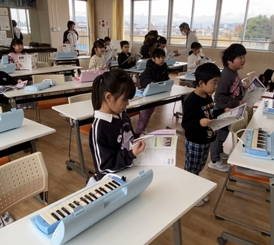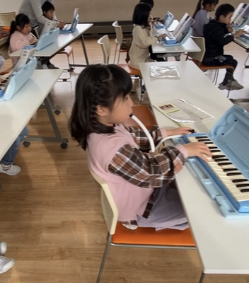 鍵盤ハーモニカで、「きらきらぼし」の演奏をしました。