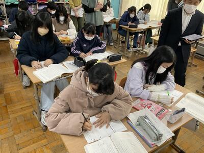 考えるとは…? 投稿: 校長 (10:50) 【6年 国語】 6年生の授業研究会 本校職員が、6年生の授業を参観して研修する機会です。 村山教育事務所より指導主事を招聘しま。 学習内容は、 「考えるとは」です。 何気なく使っている言葉でも、 言語化すると、一人一人のとらえ方が違っているのがよくわかります。 今日は、3つの意見文を読んだ感想を交流し合いました。 交流することで、自分の考え方をより深めることができます。 Tweet -