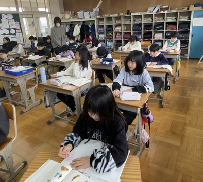 12月24日 学校の様子 投稿: 校長 (10:11) 1年 体育 体育学習の振り返りをしました。 昨日の活動の様子を写真で確認しました。 楽しそうな様子が、モニターに映し出されました。 その後、 誰と、何をして、どうだったのか、について 学習カードを使って振り返りました。 2年 図工 3年 国語 冬といえばどんなものをイメージするか? こたつ 雪 つらら みかん・・・・ 子供たち、想像を膨らませていました。 Tweet -