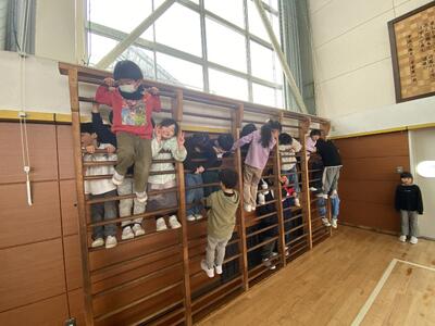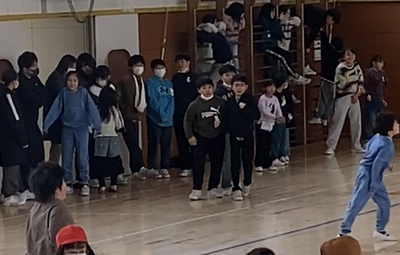 全校おにごっこ(紅組) 投稿: 校長 (13:10) 先日、白組が実施した全校おにごっこを 今日は、紅組が実施しました。 進行は5年生の健康委員 寒い体育館ではありましたが、 子供たちは元気いっぱい走り回りました。 1回目のおには6年生 2回目のおには3年生 はりきって、腕まくりをしている子もいました。 白組の子供たちは、 体育館の隅で見学です。 Tweet -