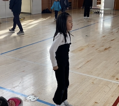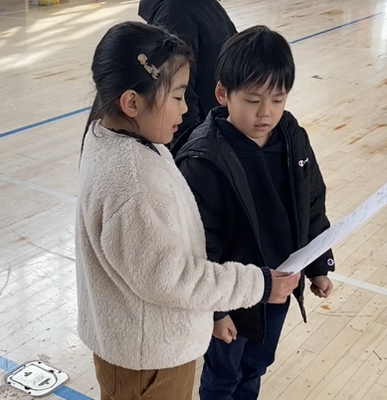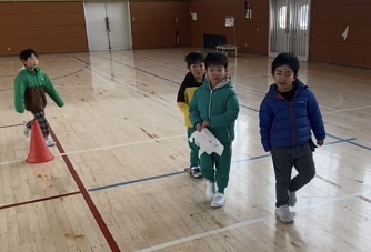 1年生が体育館に案内しました。