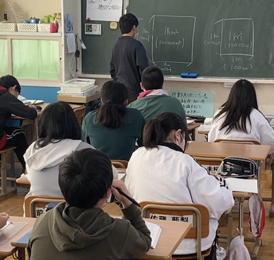 2月9日 学校の様子 投稿: 校長 (02/09) 1年 算数 みかんが7個 りんごはみかんより5個多い リンゴは何個? 子供たちにとっては手ごわい問題です。 図を描いたので、答えは分かりました。 式を書いてみて? 子供たちは苦戦していました。 6年 算数 面積や体積の単位換算の勉強です。 この勉強は、小学校の算数の難問の一つです。 図を描いたり、友達と話し合ったりしながら問題を解きました。 黒板に出てきて、考え方を説明しました。 Tweet -