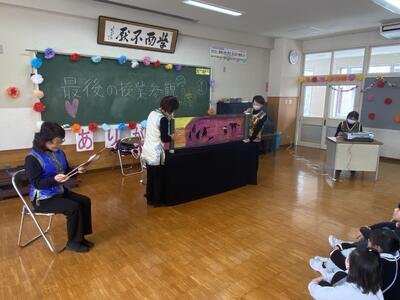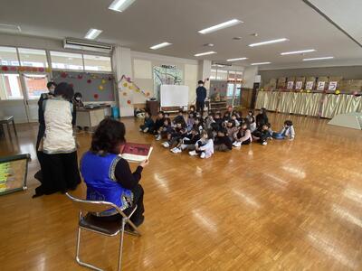 「巻物に書いてある絵」を見ながら物語を聞きました。