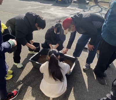 花を植え終わったら、名前を書いた短冊をさしておきます。