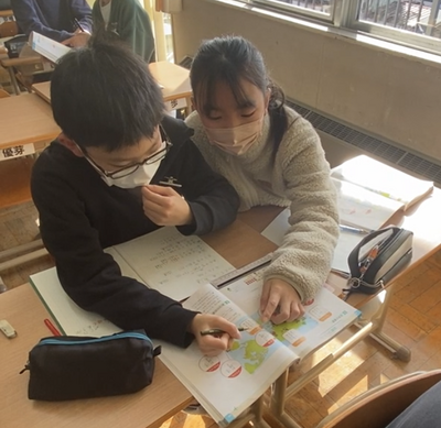 図を描いたり、友達と話し合ったりしながら問題を解きました。
